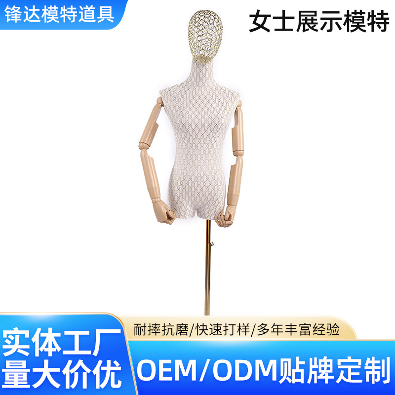 服装女士展示模特 麻布带头手半身包布支架 商场橱窗拍摄人体模特