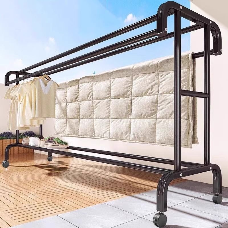 晾衣架落地全品屋家用卧室挂衣服室内凉衣杆折叠阳台伸缩晒衣帽架