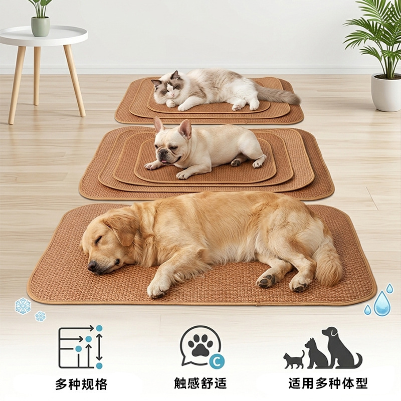 厂家批发宠物冰凉席垫凉席狗狗凉窝垫子可水洗藤编席子清透气降温