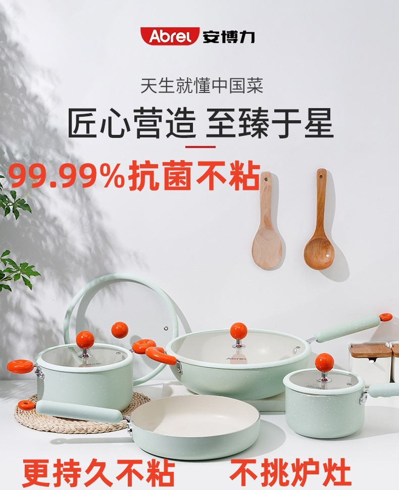 安博力大锅家用炒锅通用不粘平底锅硅胶铲电磁炉明火复合多层底
