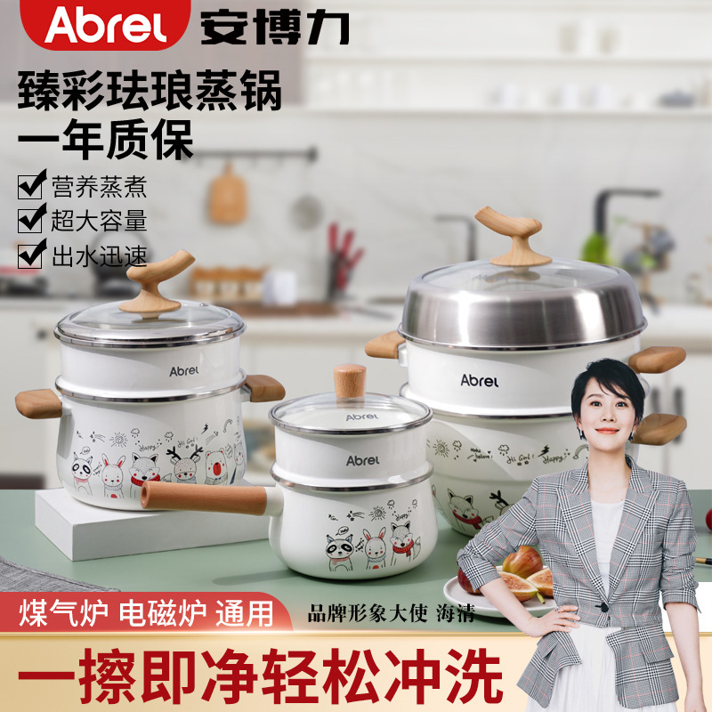 安博力珐琅蒸锅大容量电磁炉煤气灶通用双底电动双层蒸煮锅