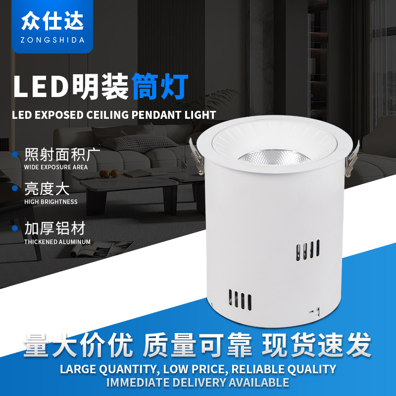 大功率明装筒灯酒店餐厅简约无主灯免开孔高透光圆形单头LED筒灯