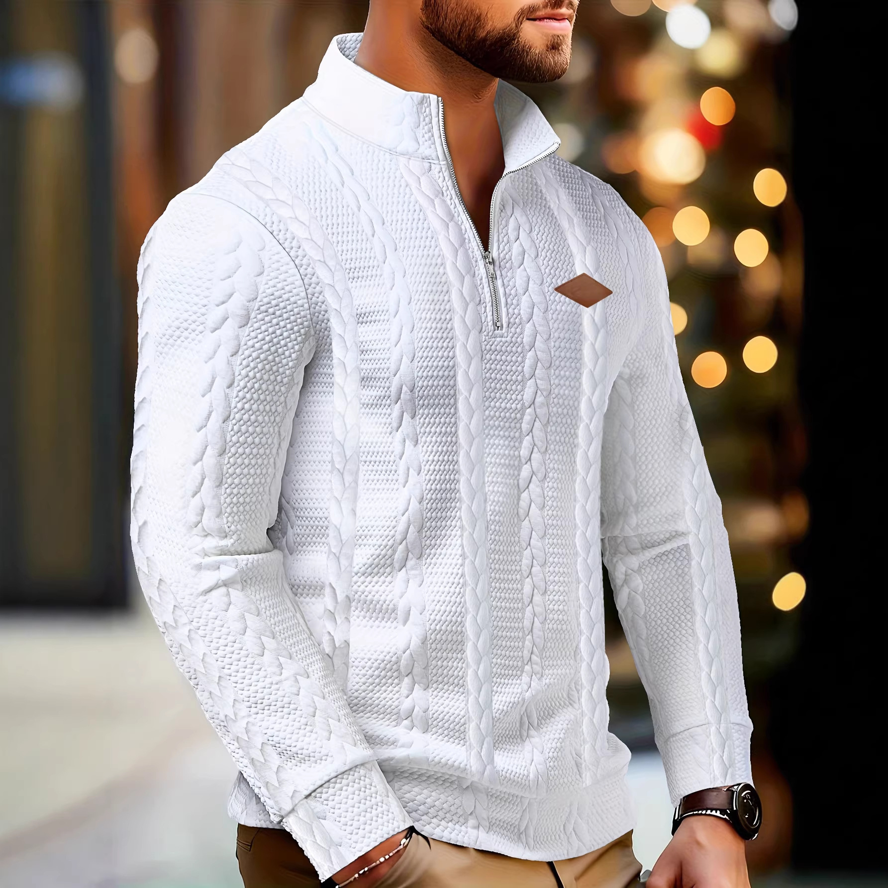 欧美跨境2026春秋新款男士卫衣休闲立领长袖提花针织套头男装上衣
