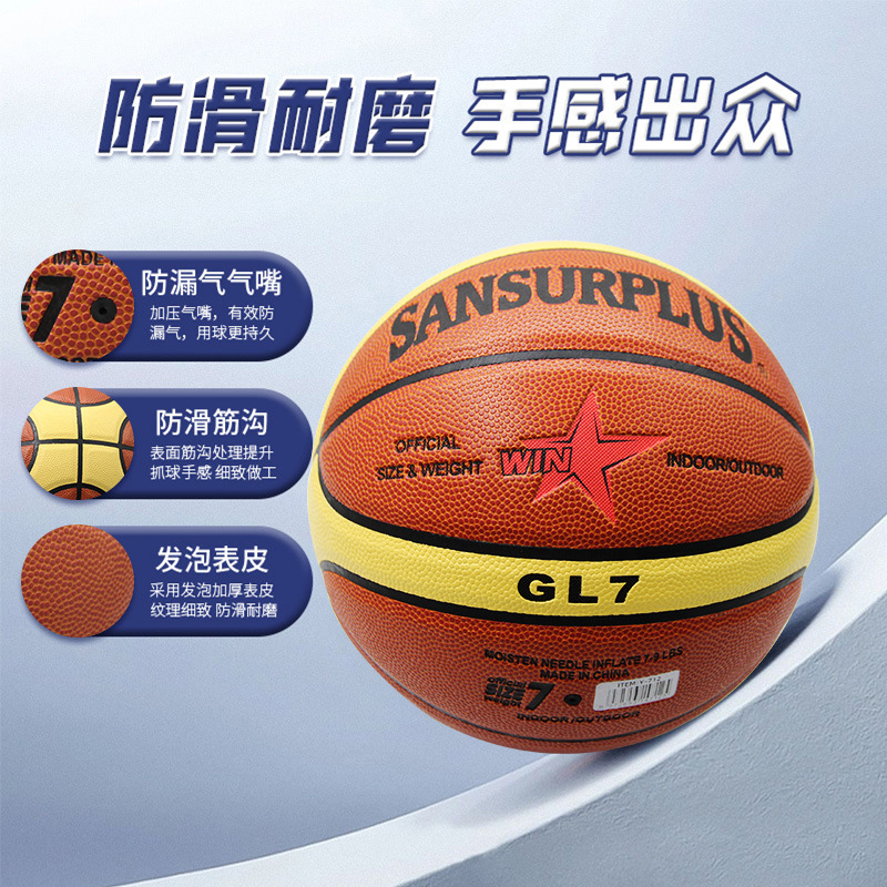 三盈pu7号成人中小学生比赛吸湿耐磨培训班专用篮球户外野球包邮