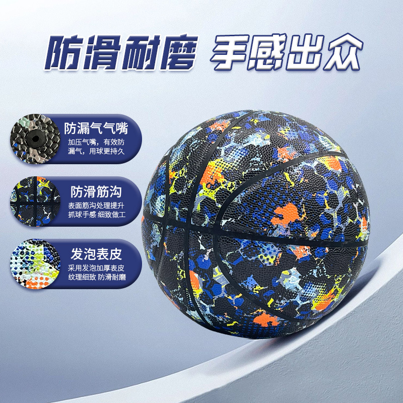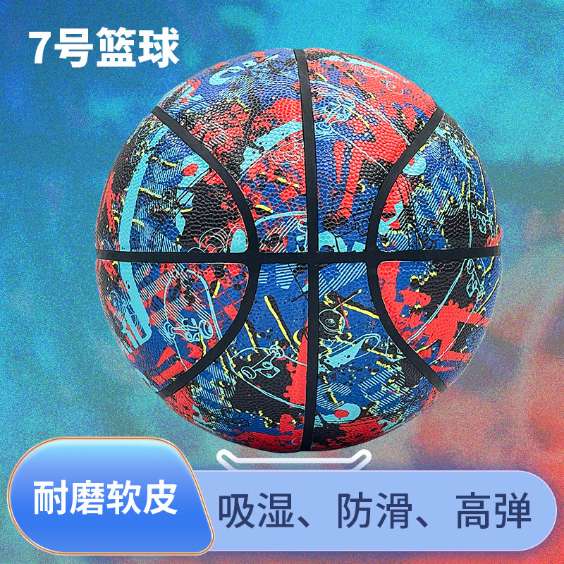 三盈成人7号花式篮球水墨涂鸦PU篮球中小学生室内外训练户外野球