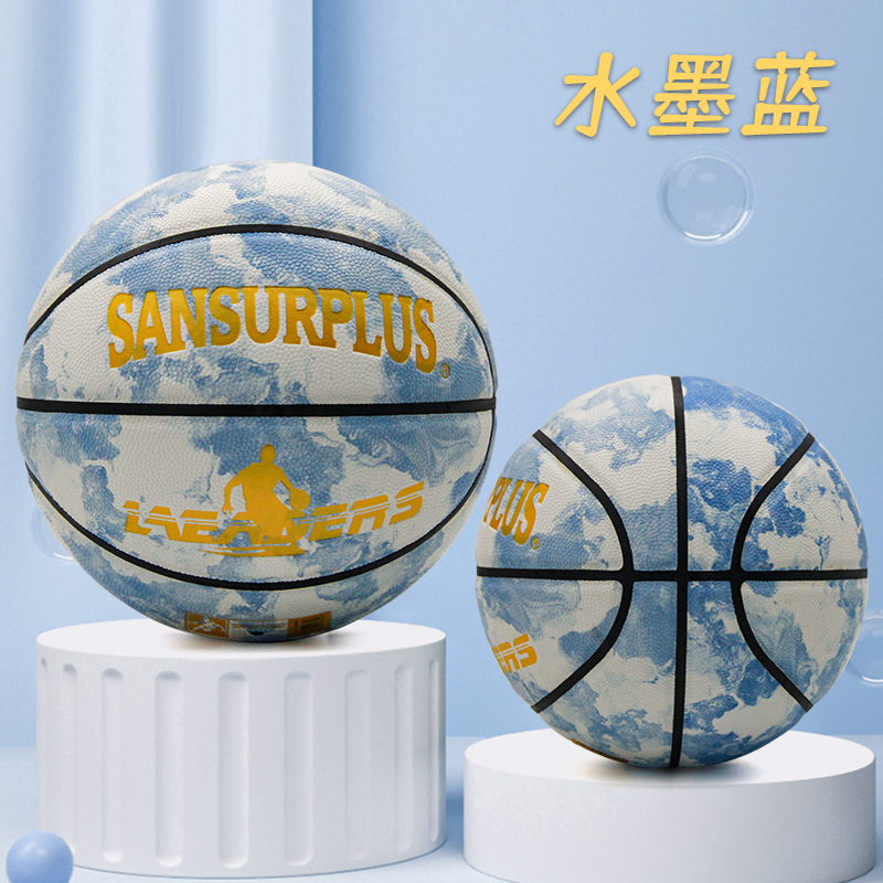 三盈成人7号蓝球水墨款经典 青少年比赛篮球室内外训练用球包邮