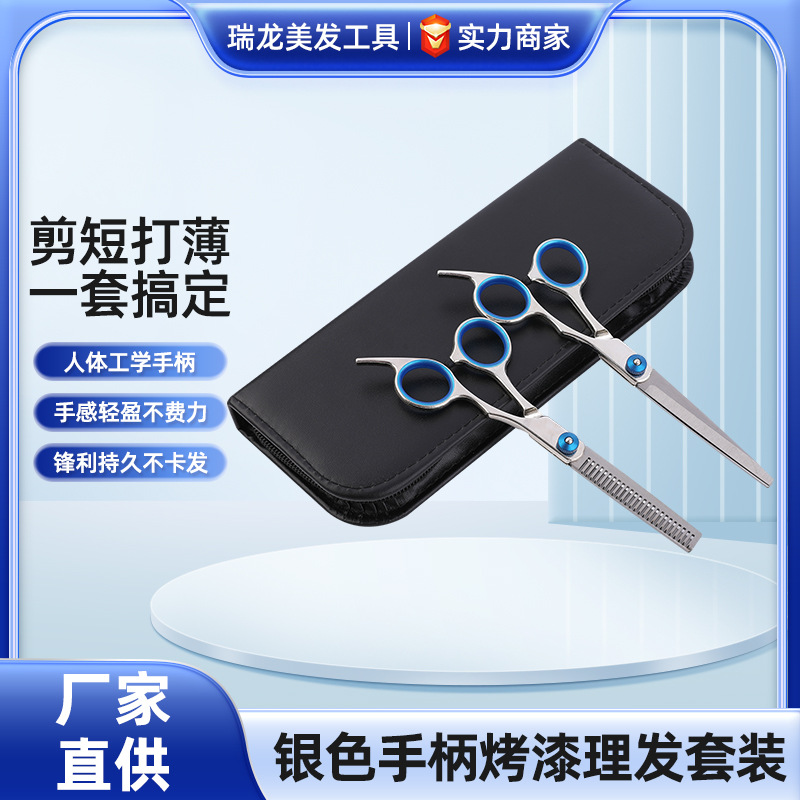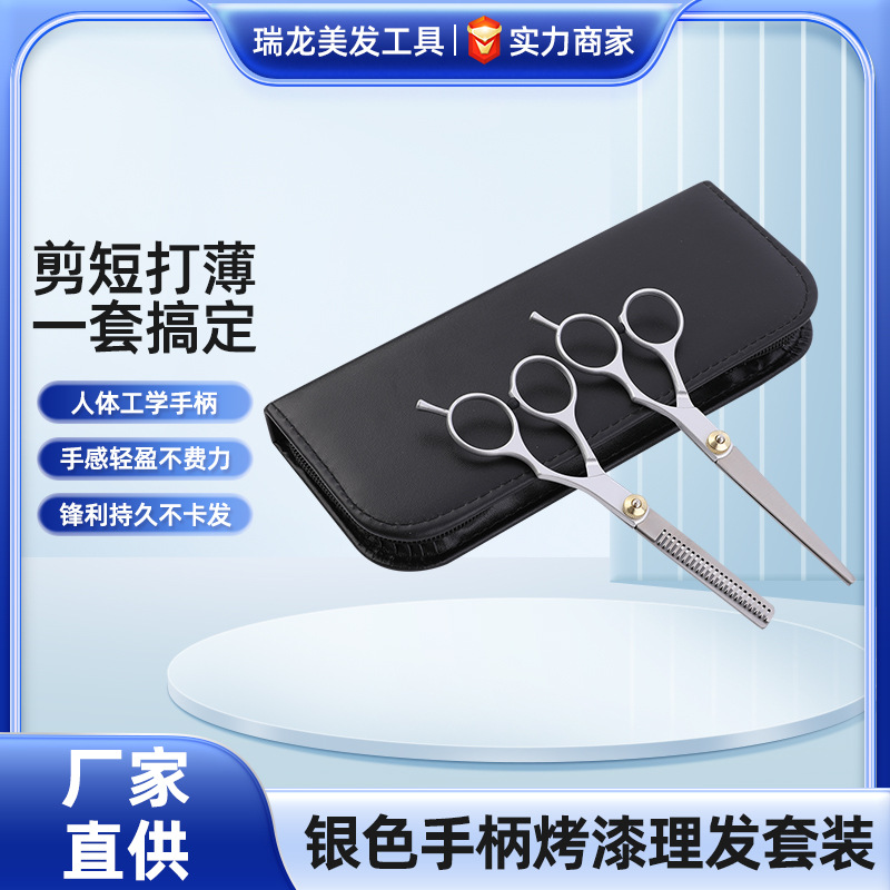 家用理发剪刀斜尾巴分体6寸剪刀银色烤漆打薄美发理发剪刀套装