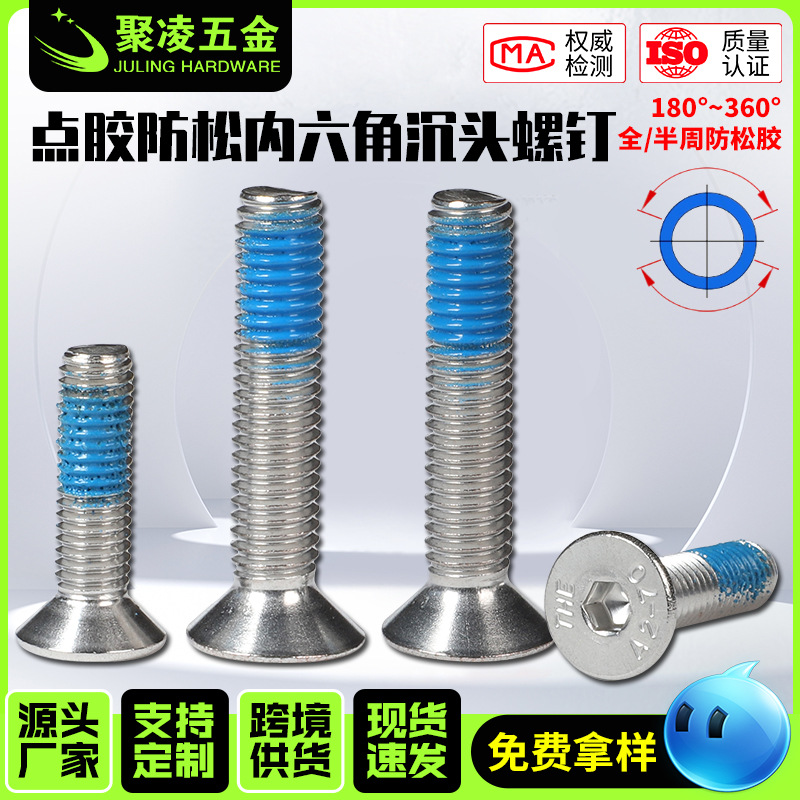 点胶沉头内六角螺丝杯头螺栓304不锈钢涂胶防松内六角沉头螺栓