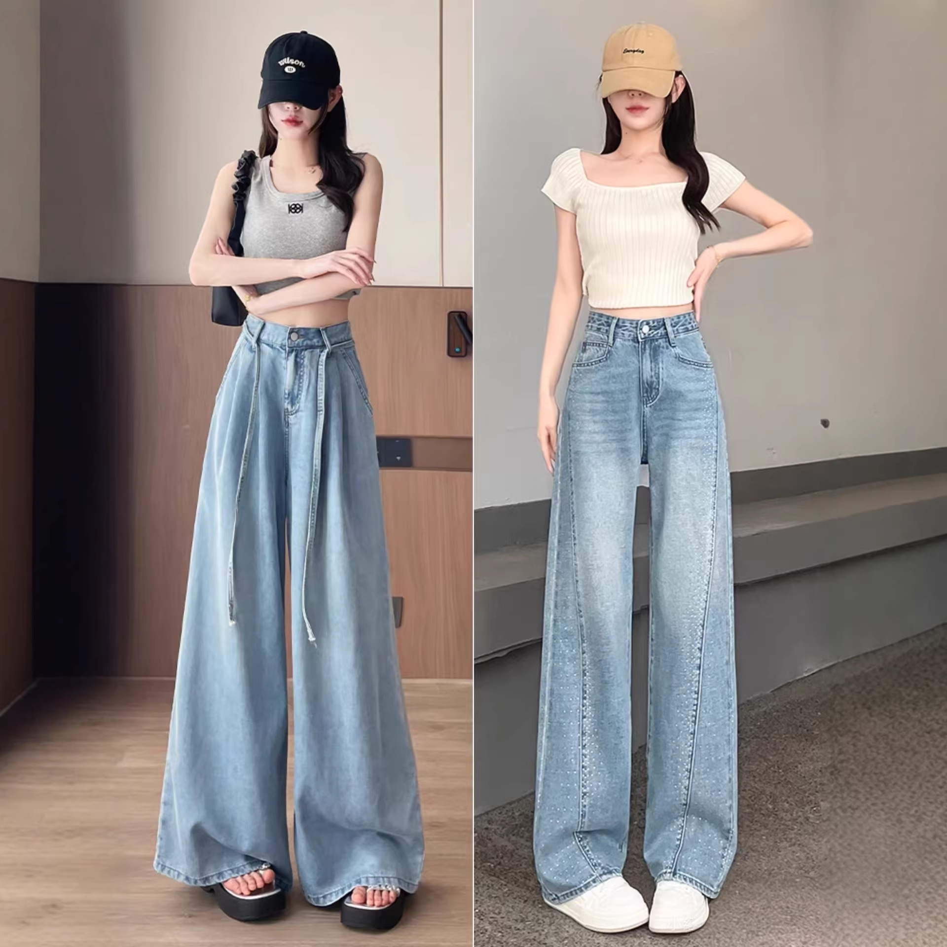 2026春季时尚新款牛仔裤女窄版高腰显瘦显高宽松舒适新款阔腿裤