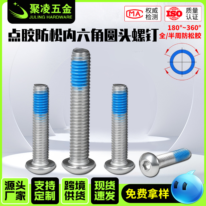不锈钢圆头点胶螺丝防松内六角圆头螺钉不锈钢盘头内六角点胶螺丝