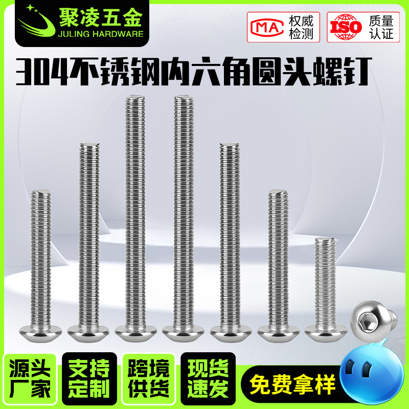 304不锈钢内六角圆头螺钉加长半圆头螺栓不锈钢内六角盘头螺丝