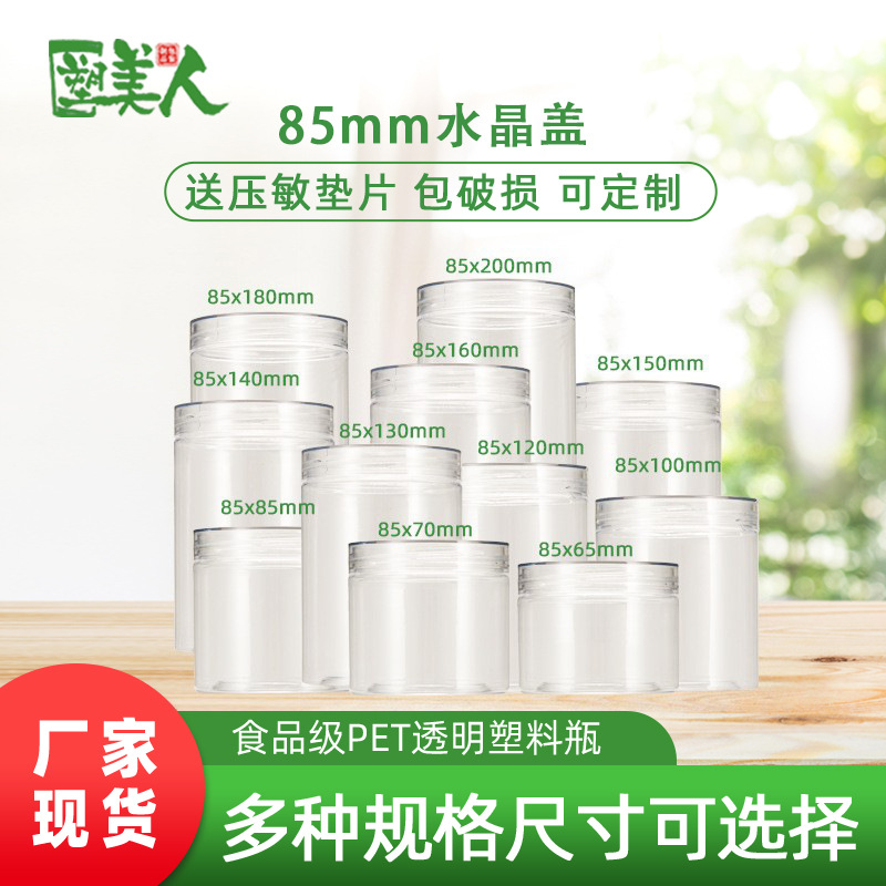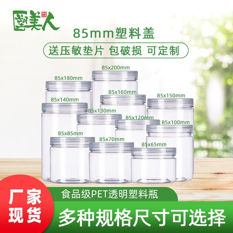 厂家现货85口径pet食品包装罐塑料瓶305垫片透明塑料易拉罐密封罐