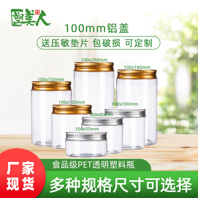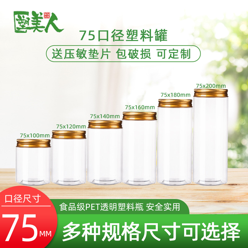 75口径铝金密封罐 PET透明瓶枸杞花茶蜂蜜食品罐海藻包装塑料罐