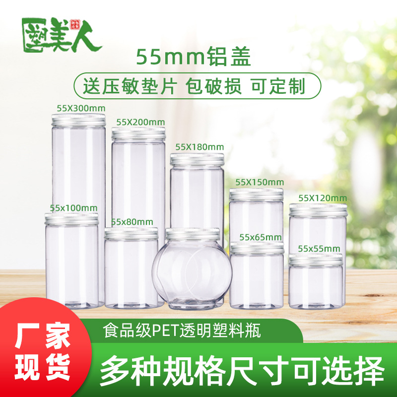 55口经pet食品级防潮密封铝盖塑料瓶 圆形饼干罐蜂蜜密封罐子