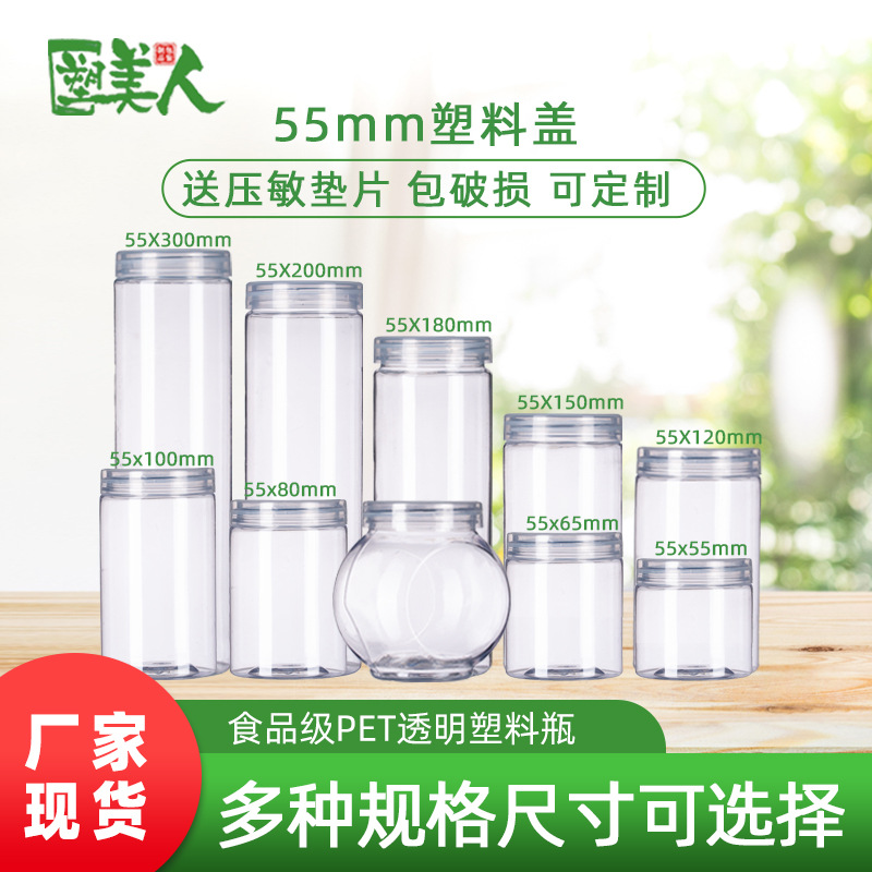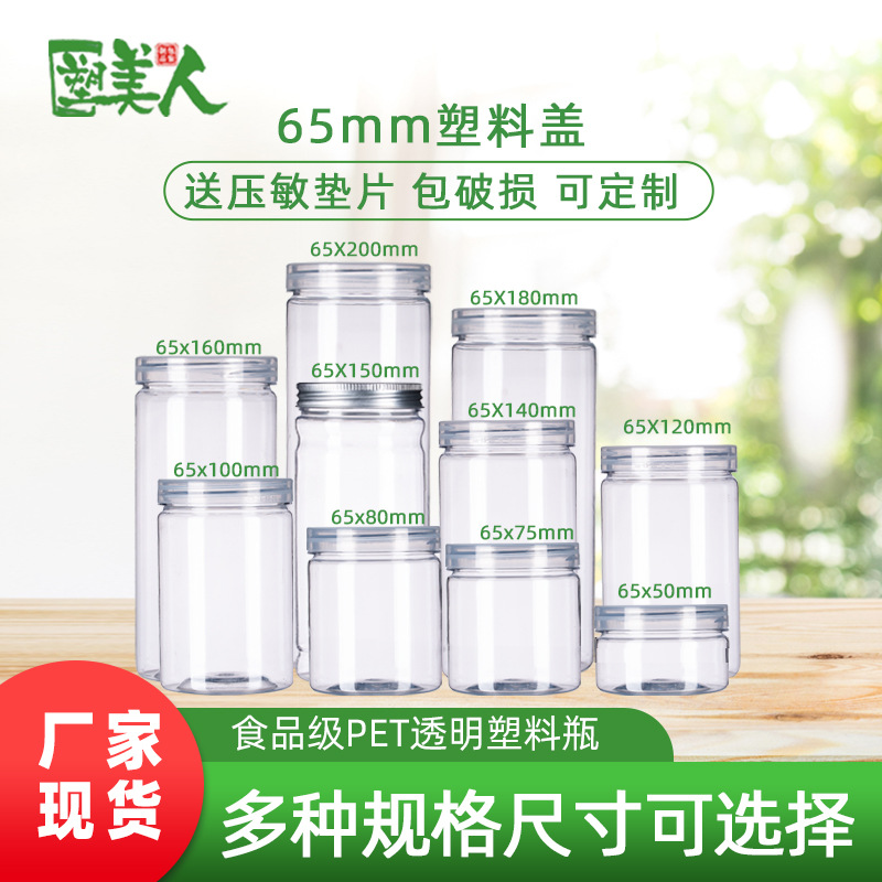 65铝盖塑料瓶子批发 透明塑料食品罐子 干果茶叶饼干面膜密封罐