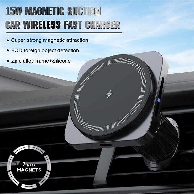 半导体制冷带风扇磁性车载无线充电 15W快速无线充电汽车支架批发