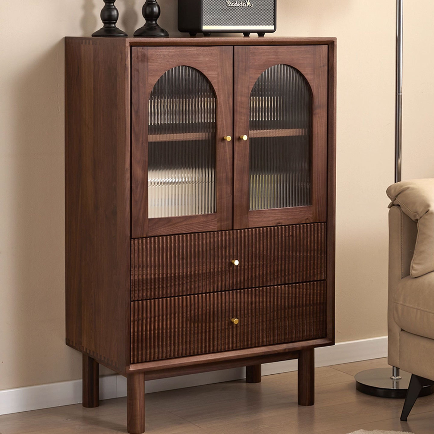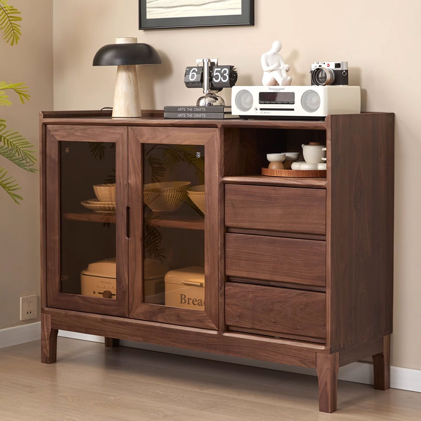 北美黑胡桃木餐边柜餐厅储物柜茶水柜实木樱桃木玻璃门客厅收纳柜