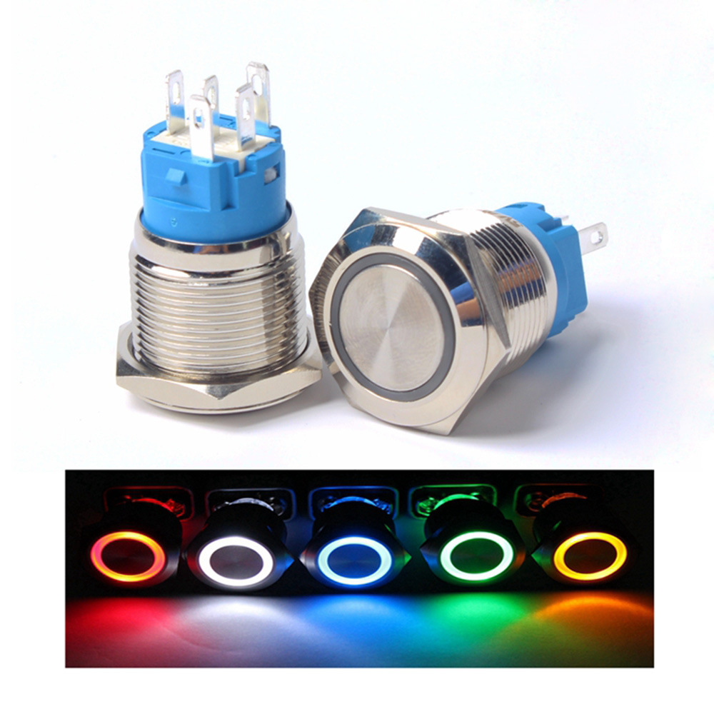 金属按钮开关16mm 平头环形电源自锁自复位 防水金属按钮按键开关