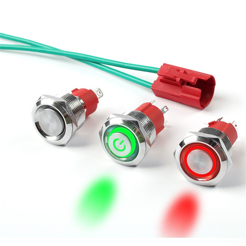 带线12MM小型金属按钮开关自复位/自锁 焊接插脚防水启动开关