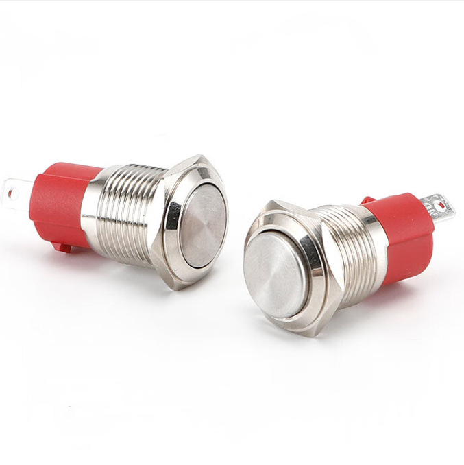 大电流金属按钮开关16mm 平头不带灯 10A15A自复位自锁开关