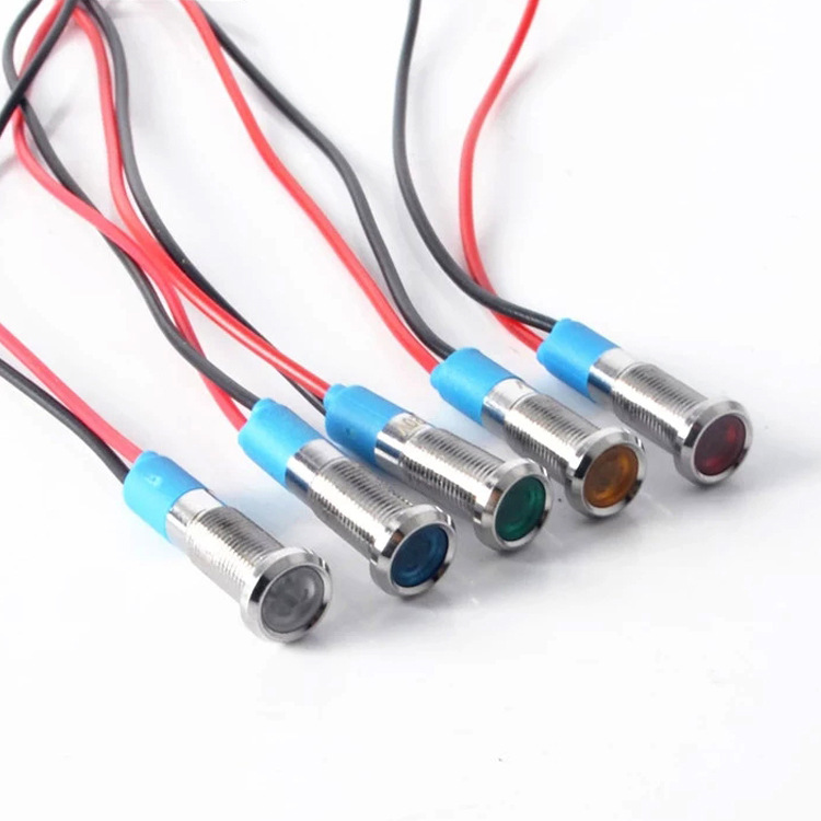 LED金属指示灯6mm ф6防水信号灯6V/12v/24v/220v 带线电源工作灯