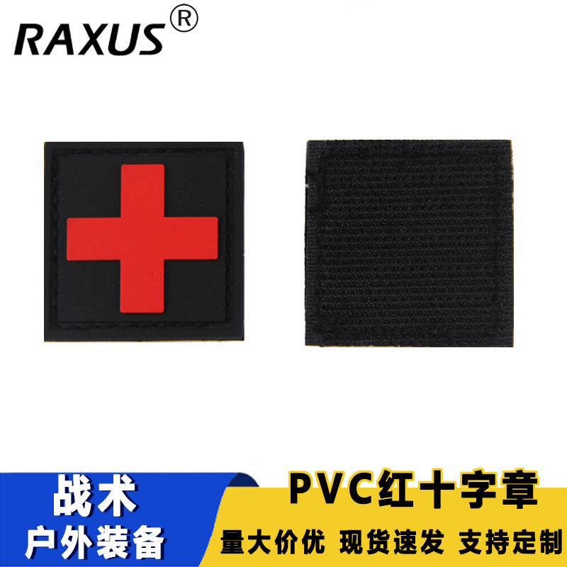 厂家批发PVC款红十字章医疗救援士气章魔术贴臂章战术医疗十字架