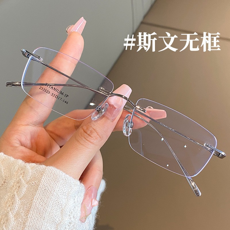 超轻钛架纯欲无边框眼镜女款近视可配度数高级感显脸小无框眼镜框