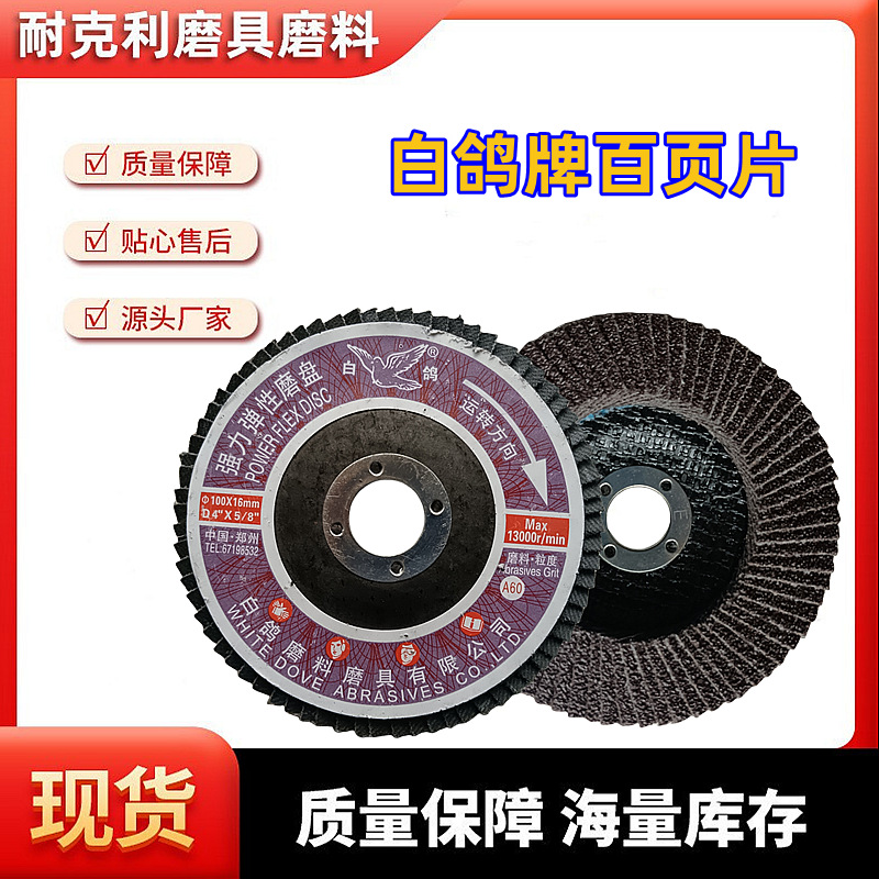 白鸽牌100*16煅烧加厚百叶轮片百页片抛光片弹性磨盘抛光砂布轮厂
