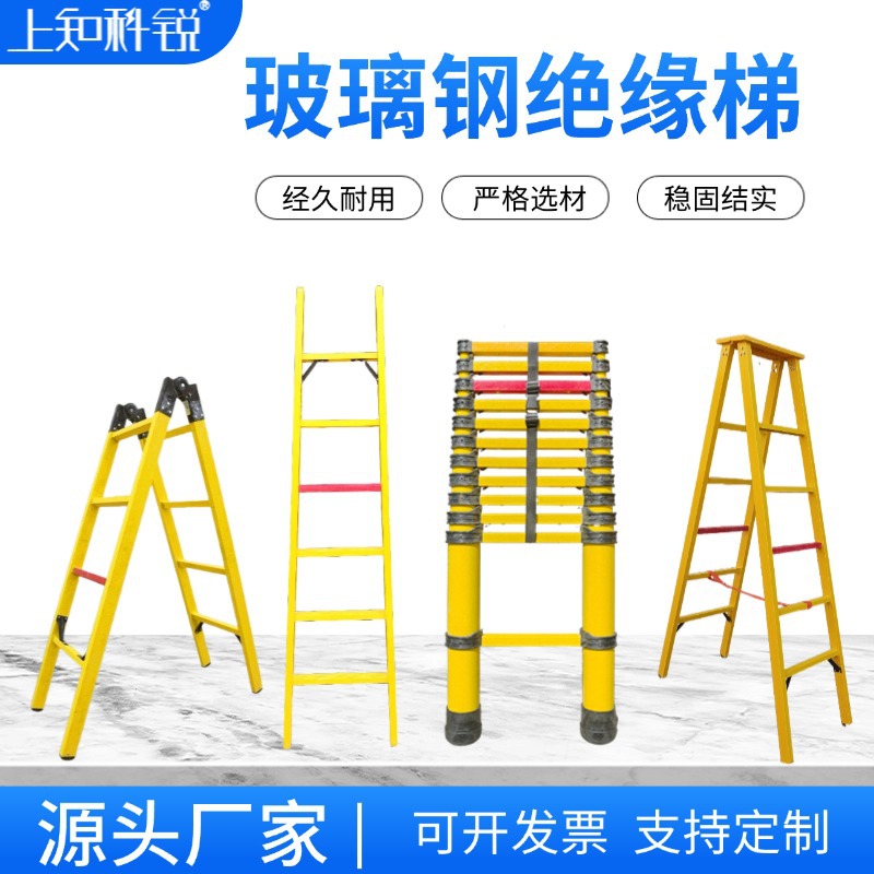 定制绝缘单梯玻璃钢伸缩鱼竿梯工程检修绝缘人字梯加厚防滑关节梯