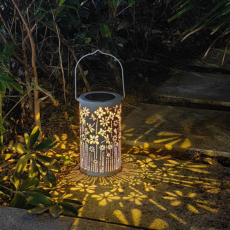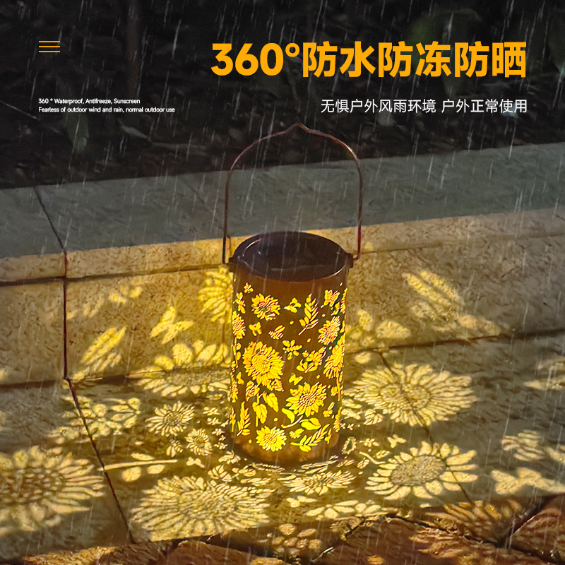 太阳能户外家用防水庭院灯花园草坪LED铁艺镂空太阳花悬挂灯