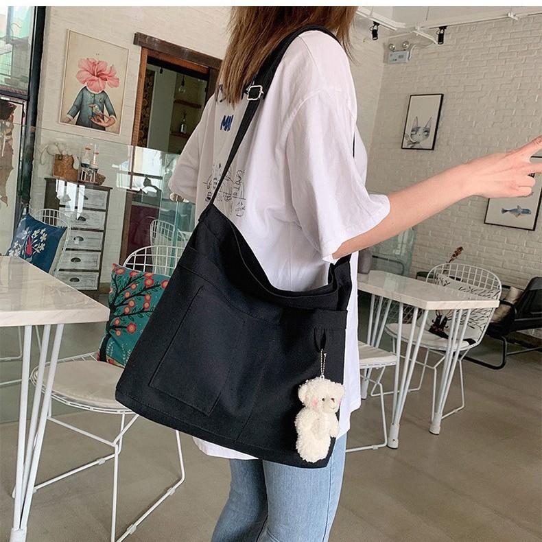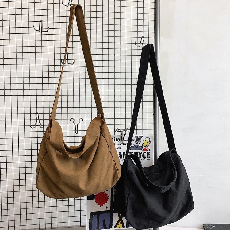 日系新款帆布包女ins纯色休闲女包大容量简约韩版单肩文艺斜挎包