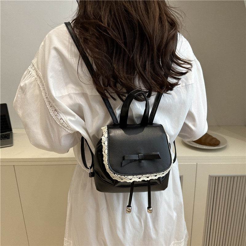 质感蕾丝珍珠蝴蝶结手提包2025时尚夏季流行纯色通勤简约水桶女包
