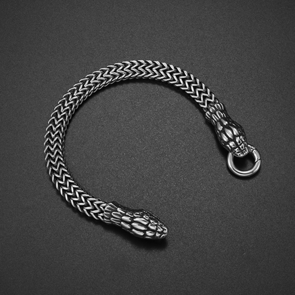跨境简约钛钢电镀灵蛇十二生肖蛇手链不锈钢嘻哈双蛇头男士手链