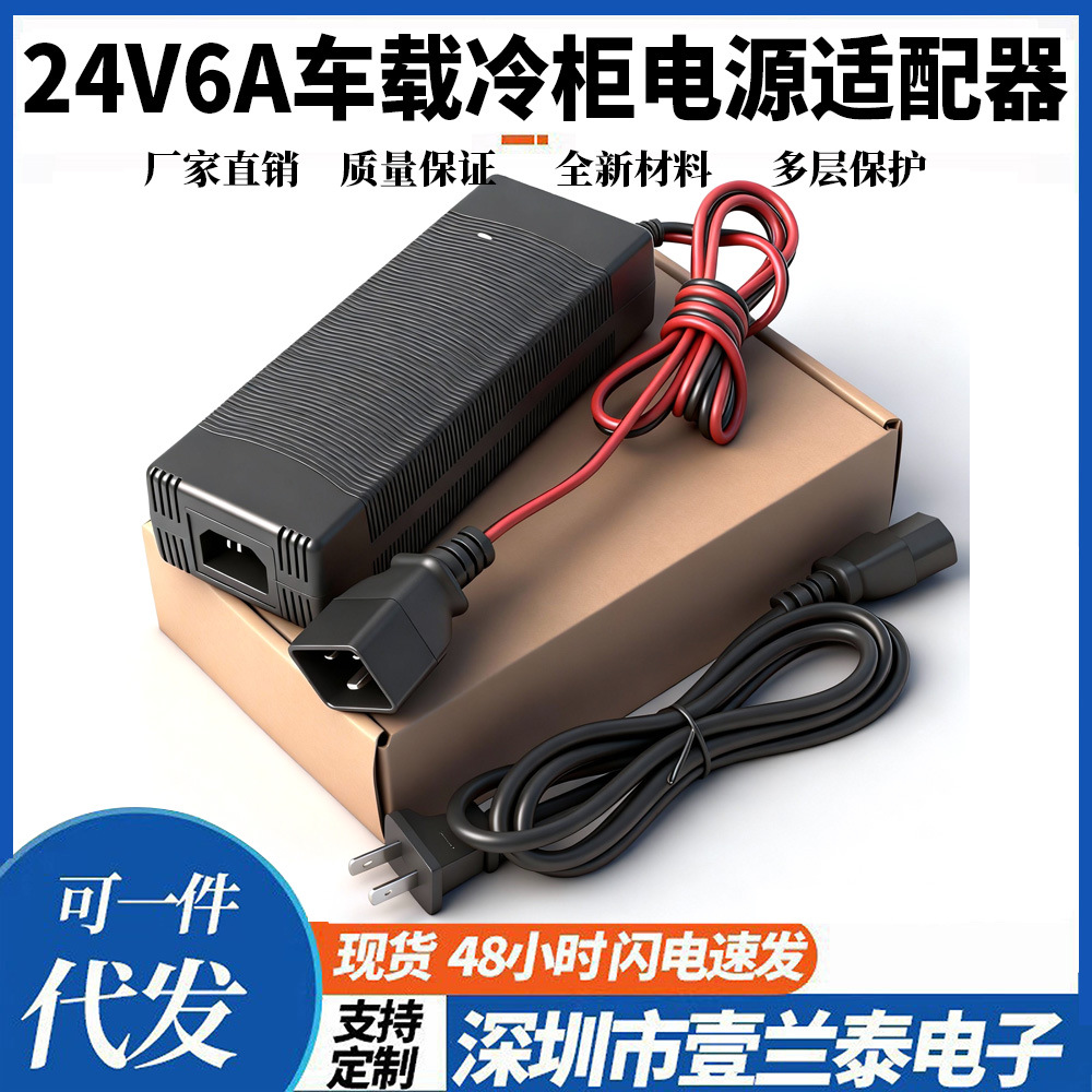 厂家供应24V6A车载冷柜电源适配器 13.5V10A压缩机水泵电源带风扇