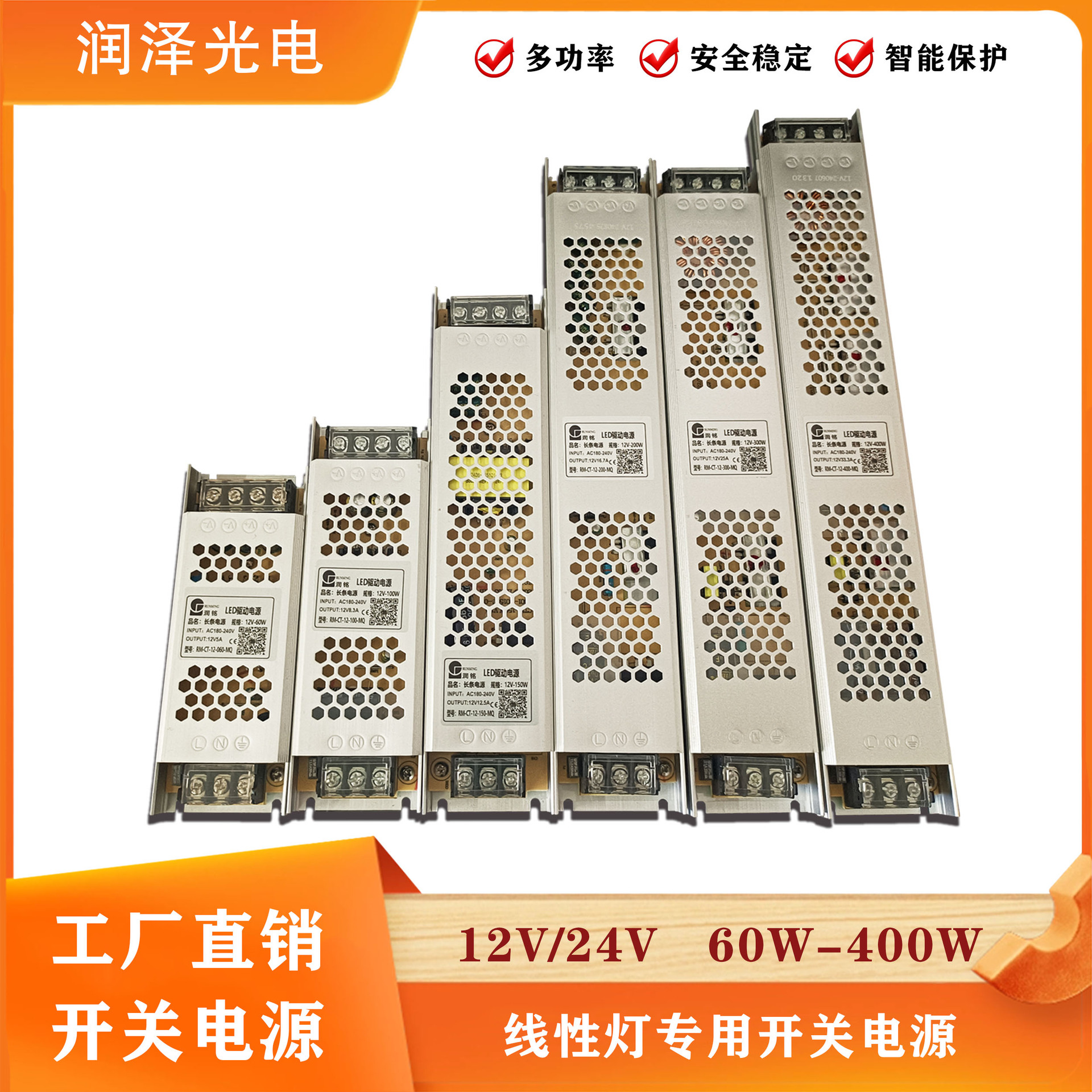 室内长条开关电源稳压12V/24V直流led变压器60W-400W灯带电源工厂