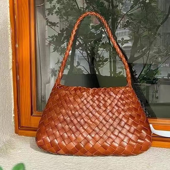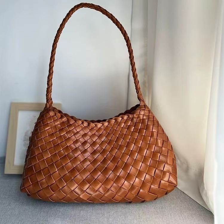 法式复古真皮编织包腋下包包女高级感小众中古包手提单肩包饺子包