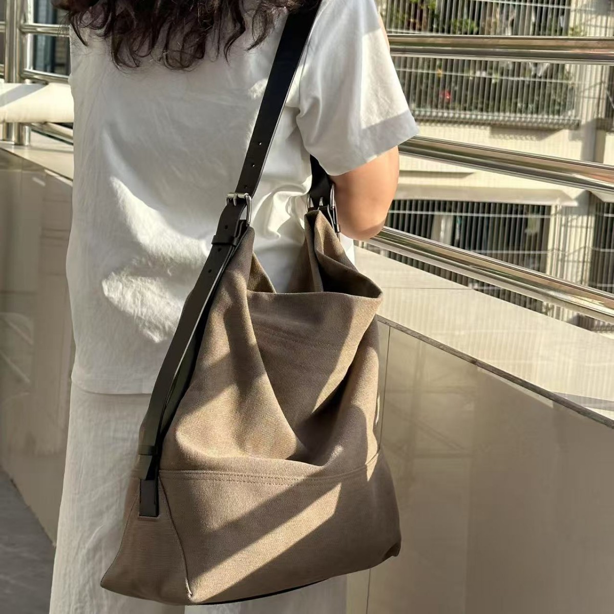 2025新款高级感女士托特包大容量包包帆布真皮腋下包女生单肩包女