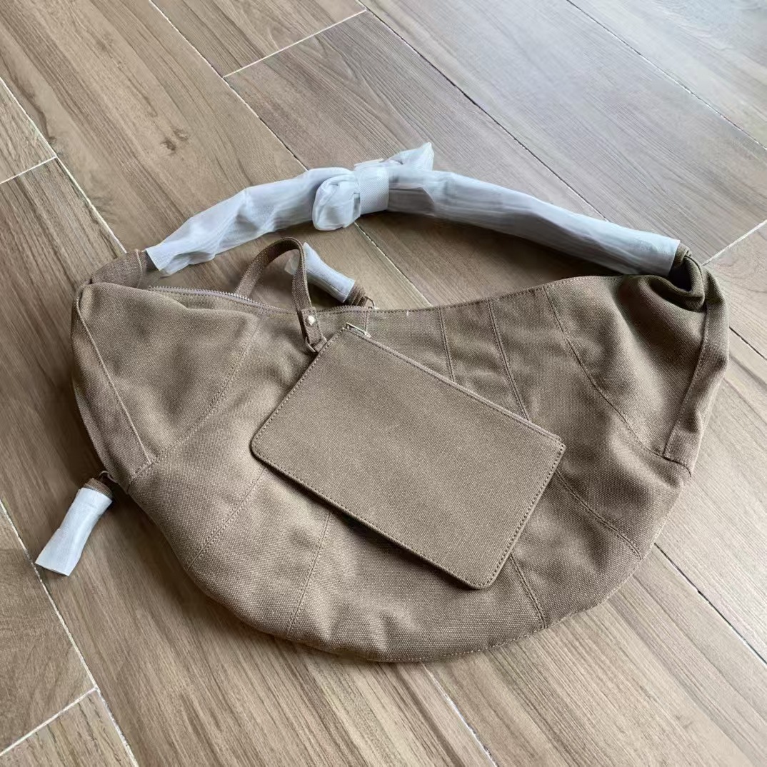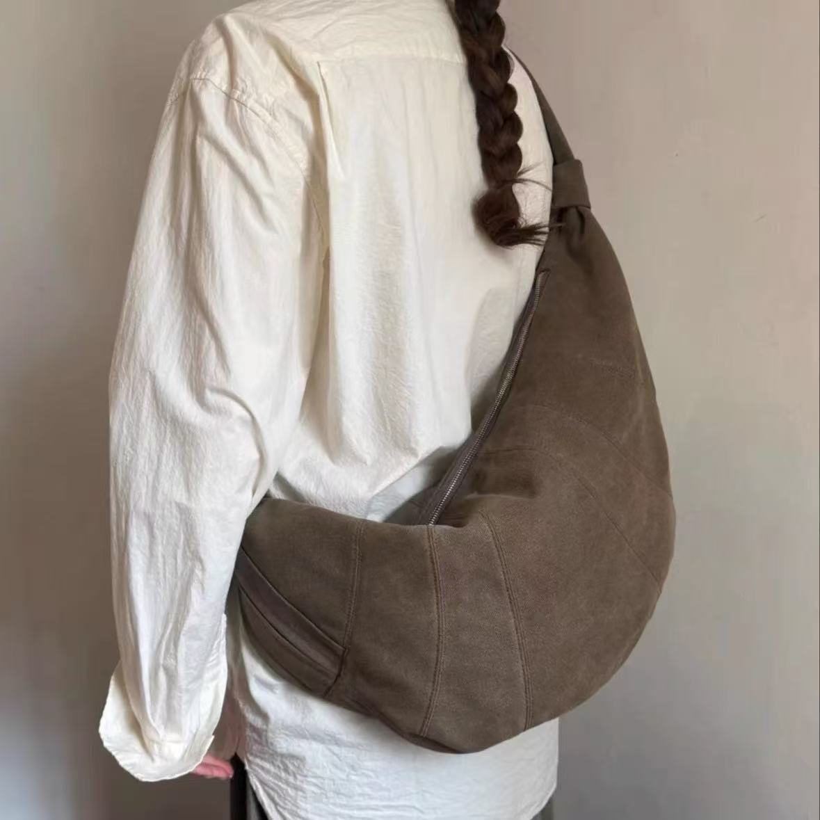 2025新款极简牛角包亚麻涂层料饺子包小众设计单肩斜挎包休闲可颂