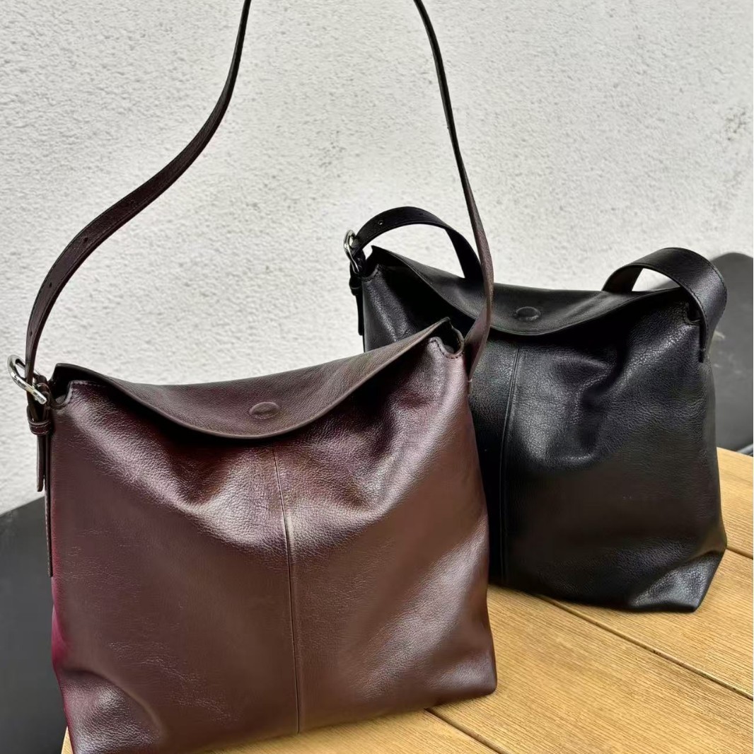 真皮百搭复古托特包女慵懒风软皮质感单肩包韩版大容量简约斜挎包