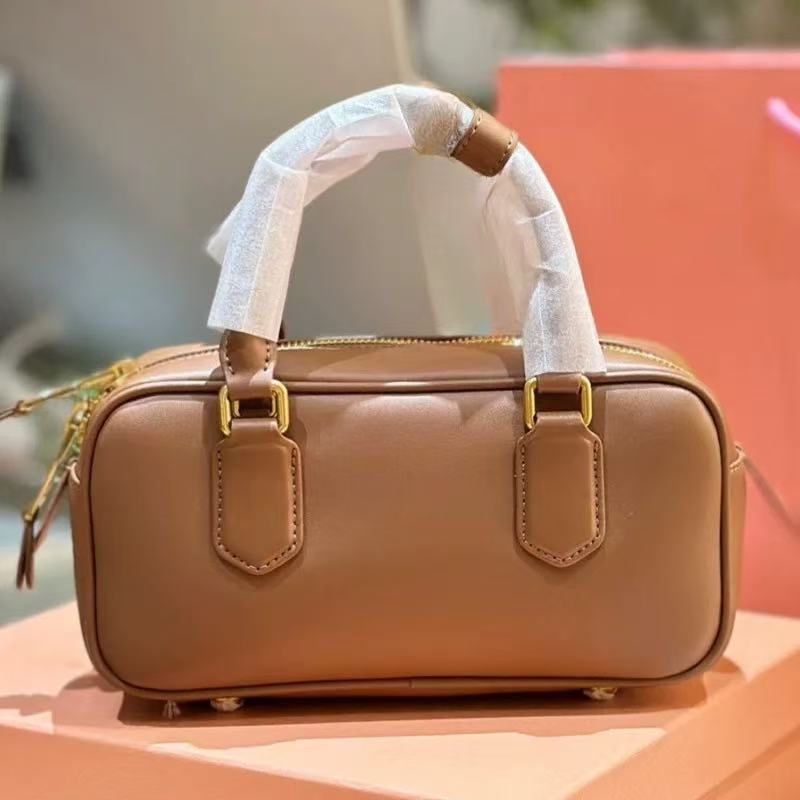 2025新款头层牛皮保龄球高品质手提包复古波士顿斜挎单肩包女批发
