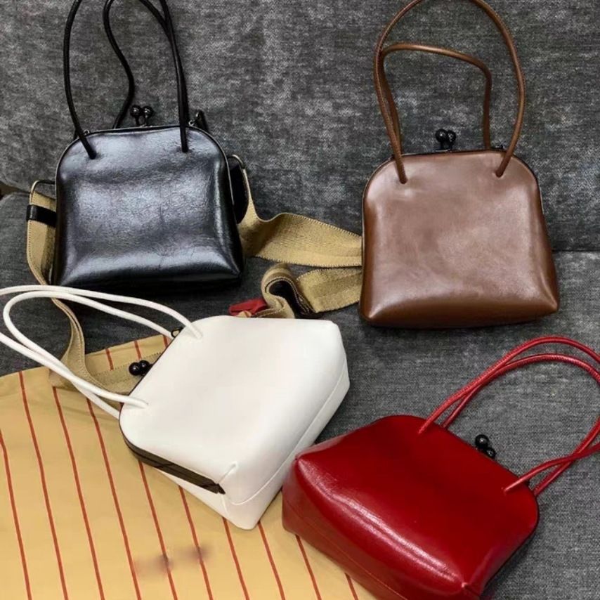 2023新款小众女包复古小方包宽肩带口金包真皮牛皮手提包斜挎包男