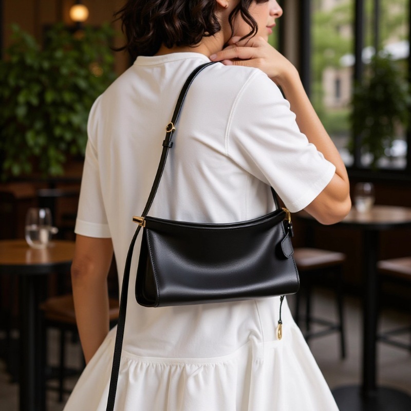 纯原新款羊皮极简复古宽肩带手提单肩包手拎包百搭腋下包女包批发
