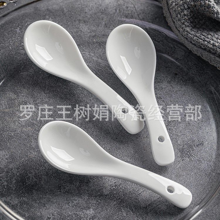 陶瓷小勺子家用汤匙小汤勺调羹馄炖勺吃饭勺搅拌勺子三弯勺
