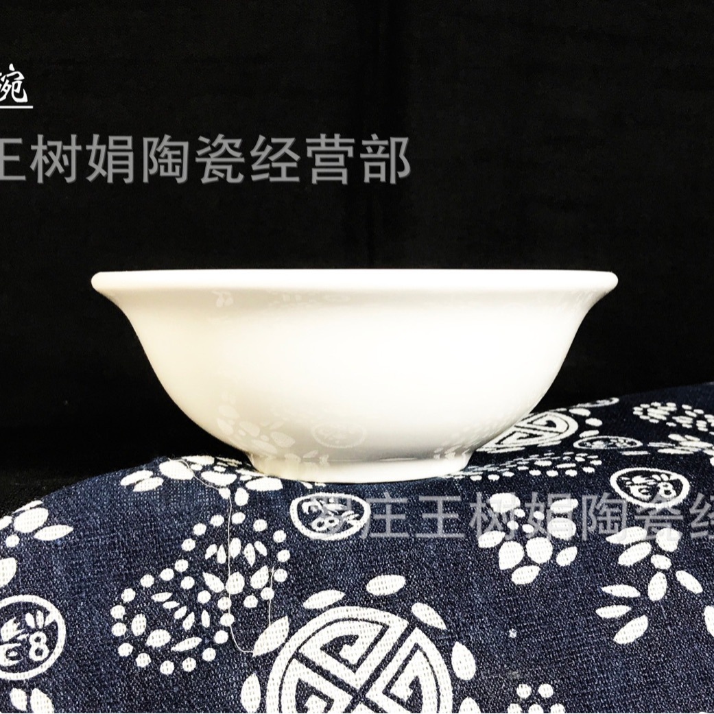 厂家批发山西陶瓷护边碗餐具米饭碗白色简约饭店用2元店批发