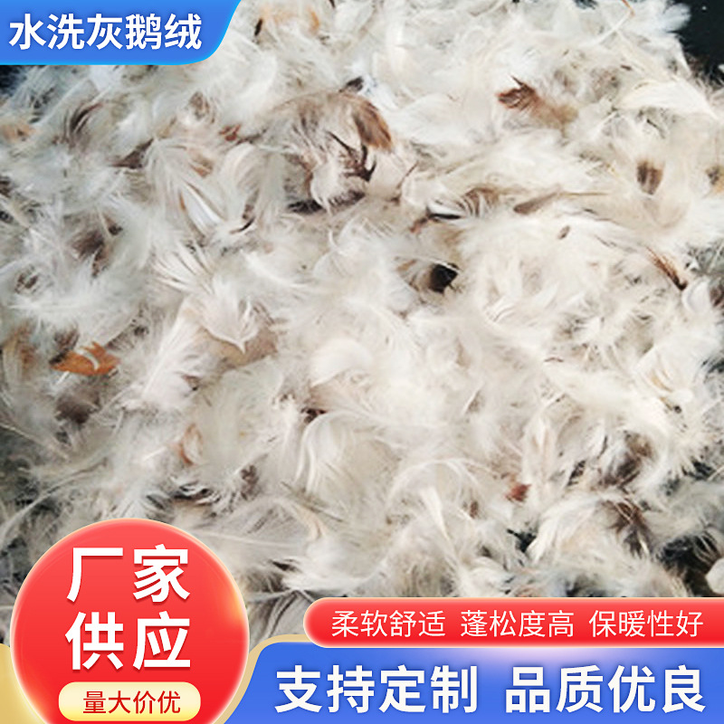 厂家供应 水洗灰鹅绒 水洗白鸭毛 白鸭水洗白鸭毛小毛片加工