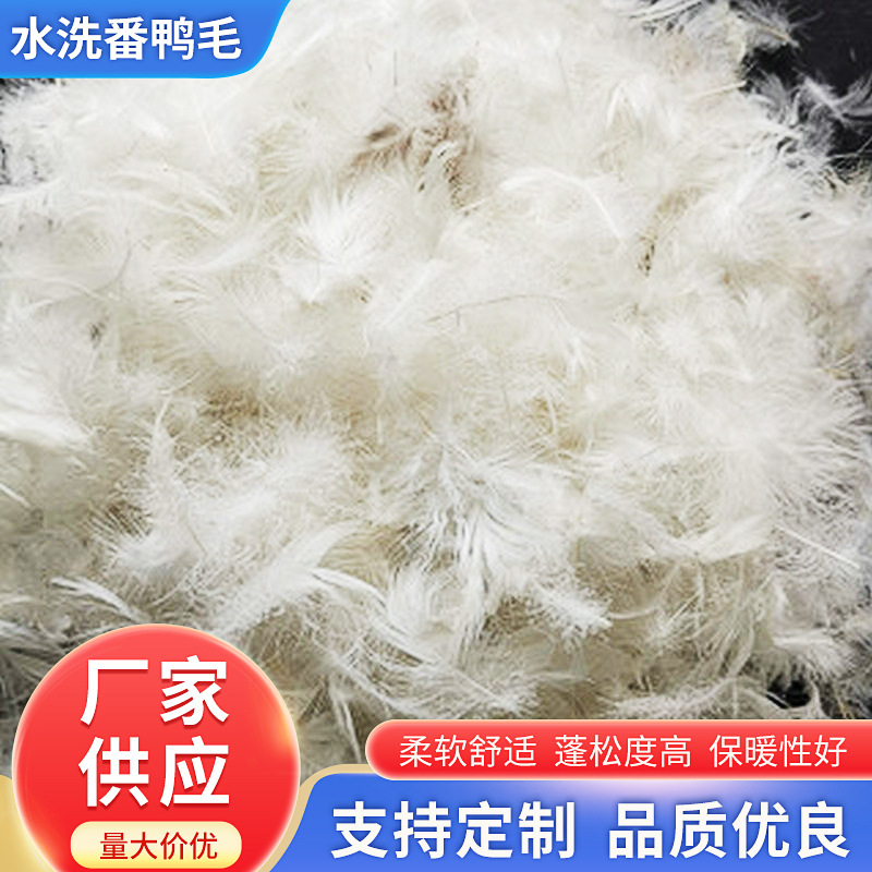 荐 高蓬松水洗番鸭毛 白水洗小鸭绒 大朵羽绒原料 批发