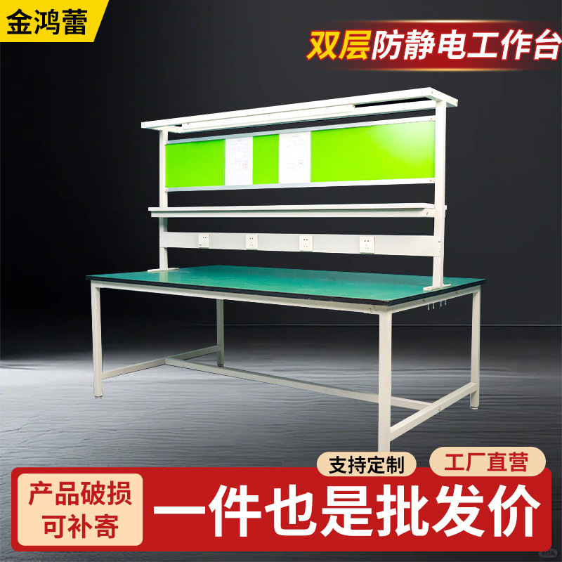 防静电工作台带灯二层 检验检测操作台工厂车间带插座流水线桌子
