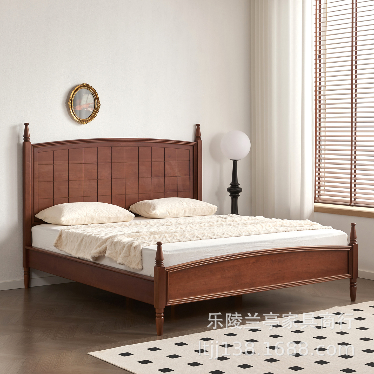 北欧法式复古实木床中古风主卧大床美式北美黑胡桃木卧室双人床