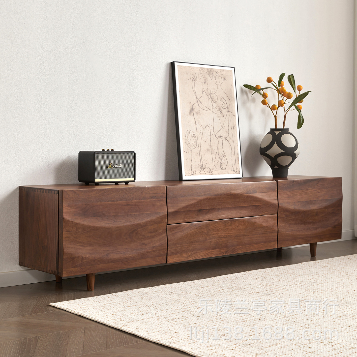 北美黑胡桃木实木电视柜北欧简约全实木客厅落地柜原木带抽储物柜
