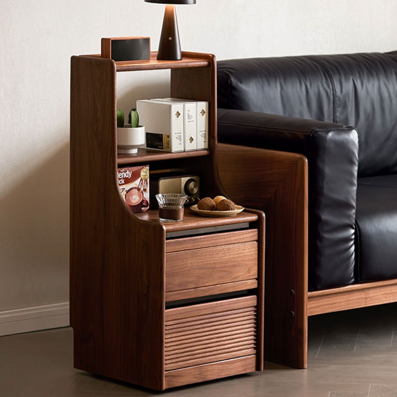 北美黑胡桃木实木床头柜北欧现代简约家用卧室书架一体床边置物柜